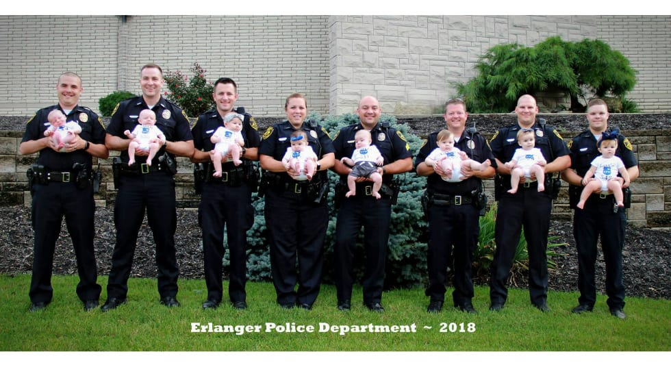 The Erlanger Police Department took to Facebook to announce that eight of its police officers have brought home eight little bundles of joy recently.