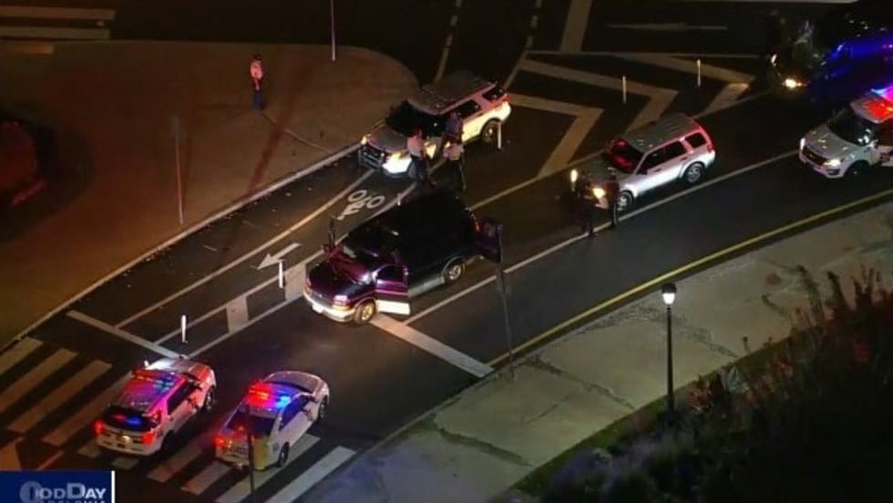 A Montgomery County, MD, officer was shot by a suspect after attempting to arrest the suspect for a homicide on Tuesday, police say. The officer was airlifted from the scene by a U.S. Park Police helicopter and condition is unknown.