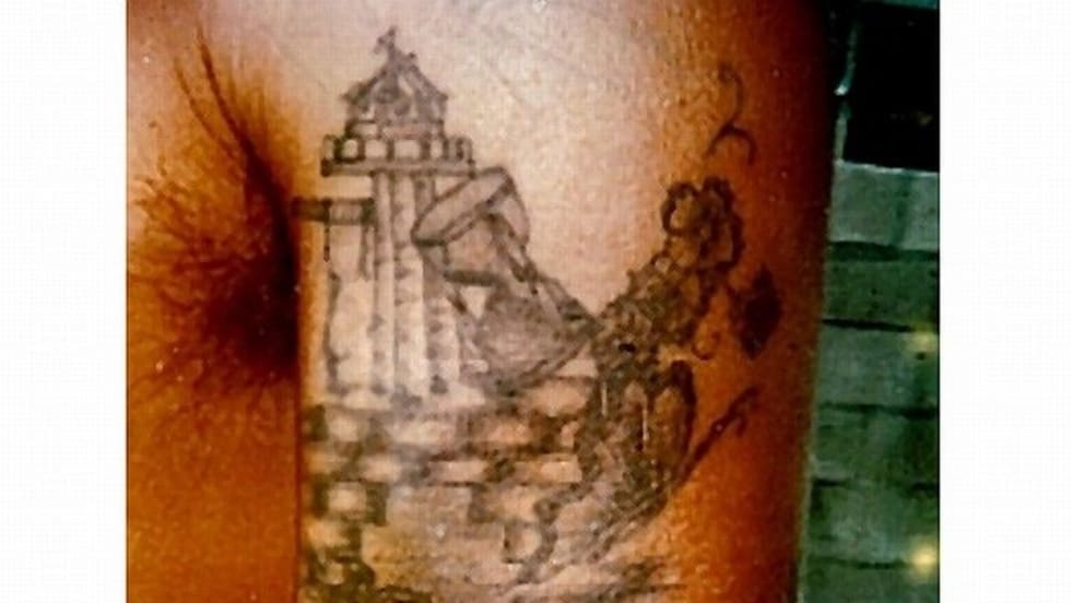 In addition to advertising gang membership, tattoos provide other details about the bearer. For the incarcerated, images of chains and locks represent the loss of freedom; an hourglass or clock face without hands indicate doing time; a string of numbers may be an inmate's prison ID; one laughing face, one crying face means play now, pay later or my happy life, my sad life; a tombstone with numbers may indicate years of incarceration; the face of a female crying usually means someone on the outside is waiting for them. Caption information provided by POLICE gang expert Richard Valdemar.