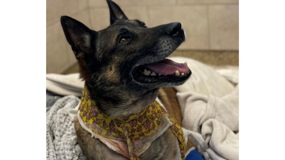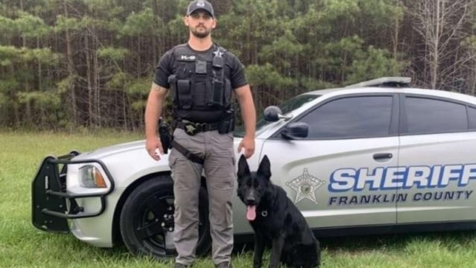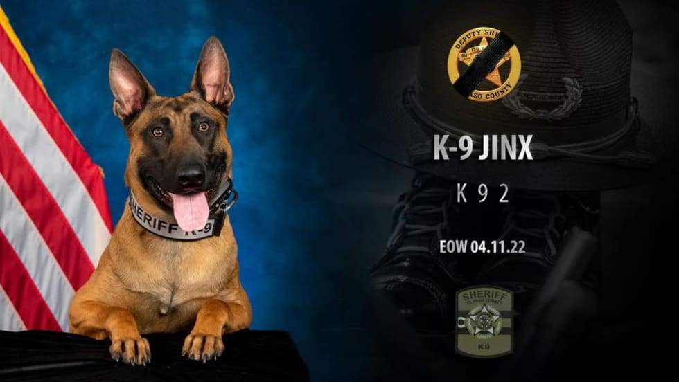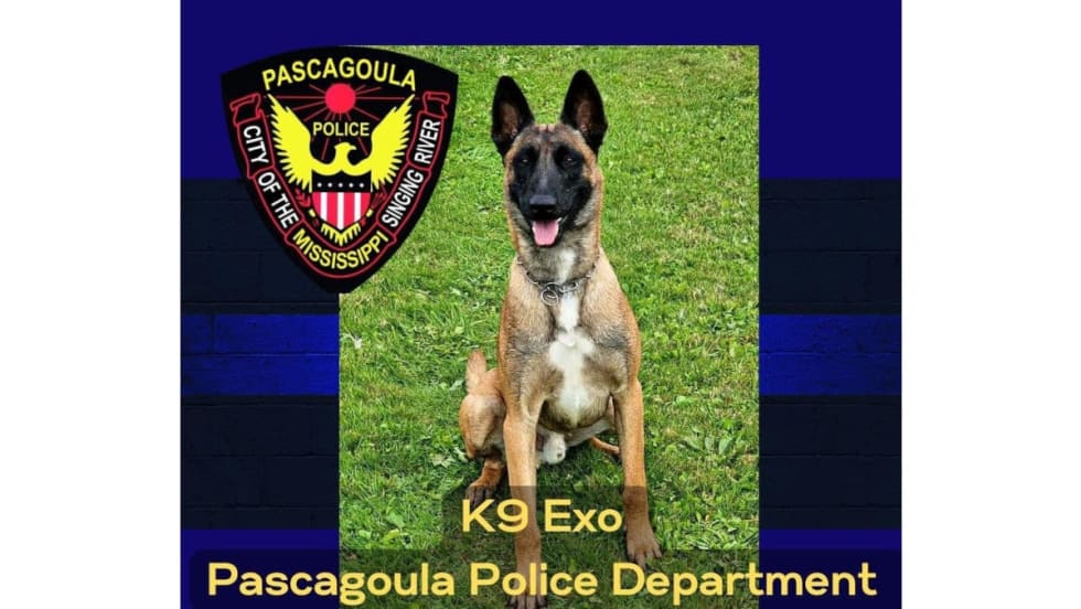 The Pascagoula Police Department reports that K-9 Exo and his handler, Officer Prisock, were tracking a suspect when the suspect “fired shots at our officers and hit K-9 Exo."