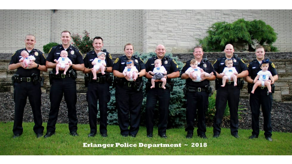The Erlanger Police Department took to Facebook to announce that eight of its police officers have brought home eight little bundles of joy recently.