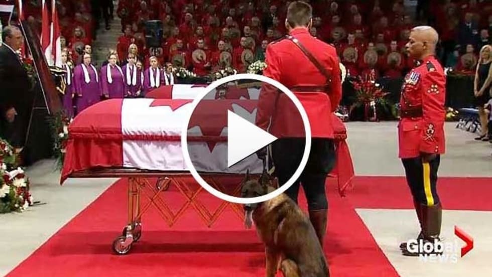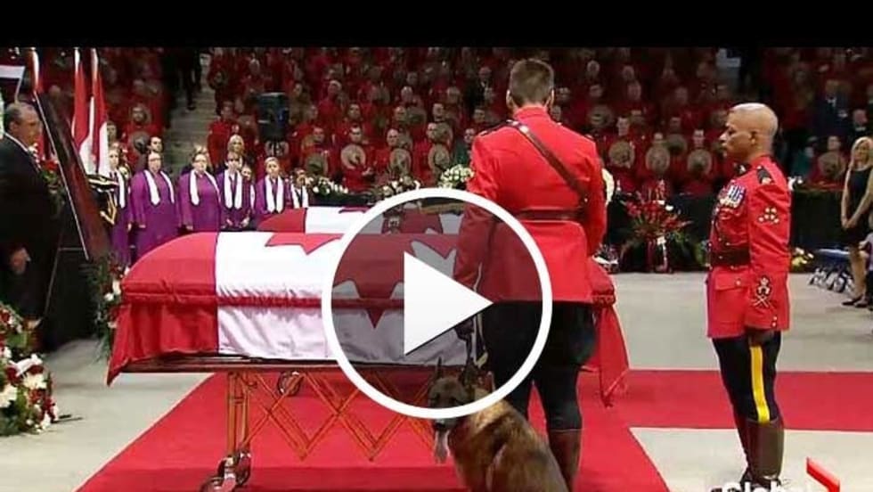 Police and members of the public filled a hockey arena in Moncton, Canada, on Tuesday for the regimental funeral of three New Brunswick Mounties killed in the line of duty.