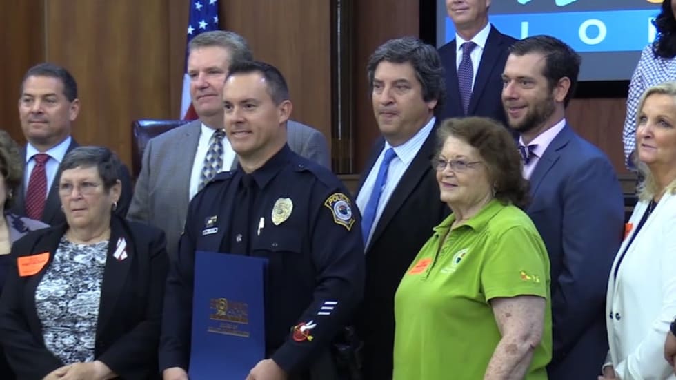 “It’s not about me. It’s about my brothers and sisters in law enforcement, fire rescue, first responders. We all had a role that day,” Coconut Creek Officer Michael Leonard told Broward County commissioners as they honored him Tuesday. “I’m honored to wear the badge.”