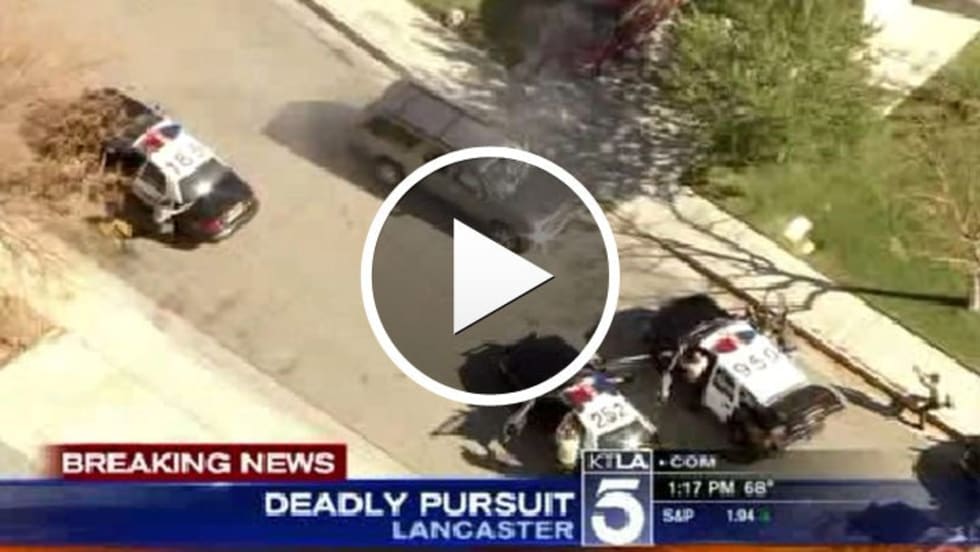 A bank robbery suspect led Los Angeles County Sheriff's deputies in a high-speed pursuit Friday that ended with a deadly shootout on a Lancaster cul-de-sac.