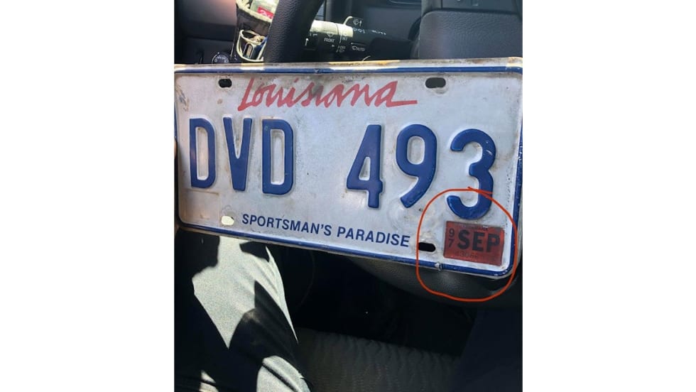 The motorist tooling around in the car with the 1997 plate told the officer, "Sorry, officer. I’ve been busy lately and totally forgot to renew my vehicle registration."