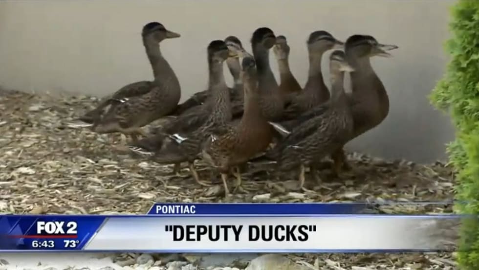 A group of ducks have made their home inside a courtyard at the Oakland County's Sheriff's office in Pontiac, MI, and deputies have embraced them.