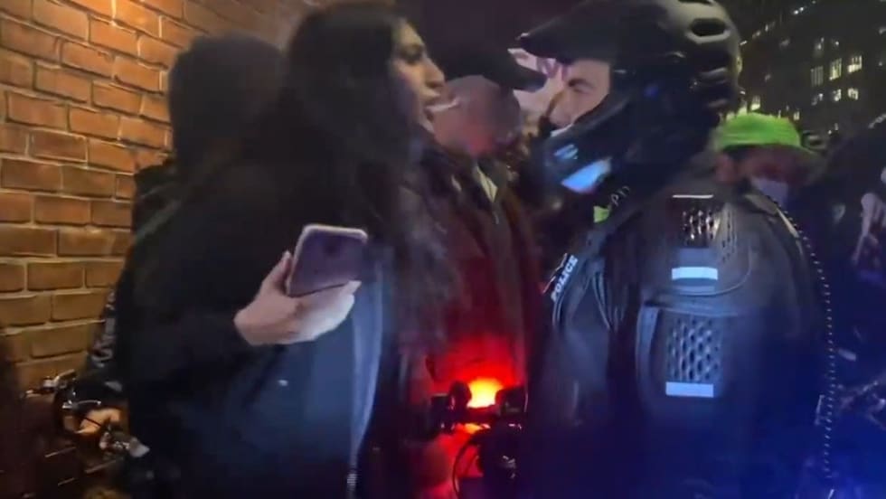 n another election protest incident, a woman faces charges after she allegedly spit in the face on an NYPD sergeant.