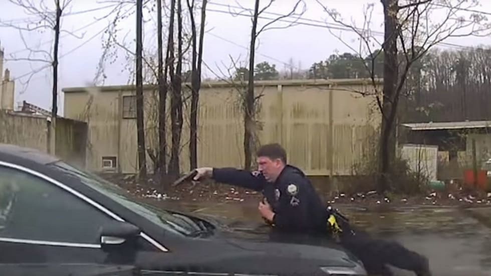 In the video released by police, Starks can be seen walking up to Blackshire's car with a gun drawn and instructing him to get out of the car multiple times. The 30-year-old refuses, asking, "What did I do?" and "What are you going to shoot me for?" before slowly accelerating and hitting the officer.
