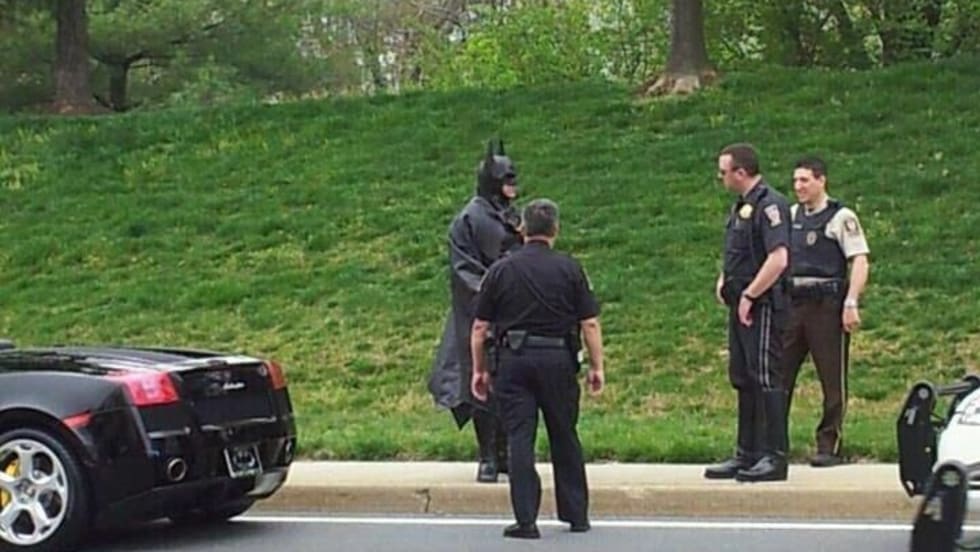 Montgomery County (Md.) Police officers pulled over the Caped Crusader on Route 29 for driving with "no tags on [the] Batmobile," the agency announced on its Twitter feed.