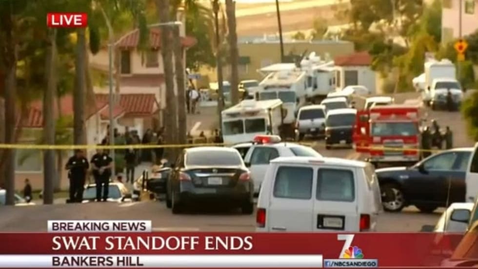 A relentless shooter armed with a high-powered rifle terrorized a San Diego neighborhood Wednesday, opening fire on police officers and bringing air traffic to a halt before ultimately being taken into police custody.