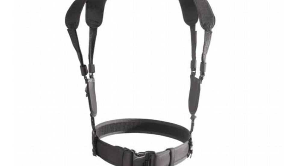 The harness transfers the weight of an equipment-laden duty belt from the hip to the shoulders of the officer. Unlike traditional suspenders, the harness fits under the duty shirt and attaches to the duty belt with minor alterations.