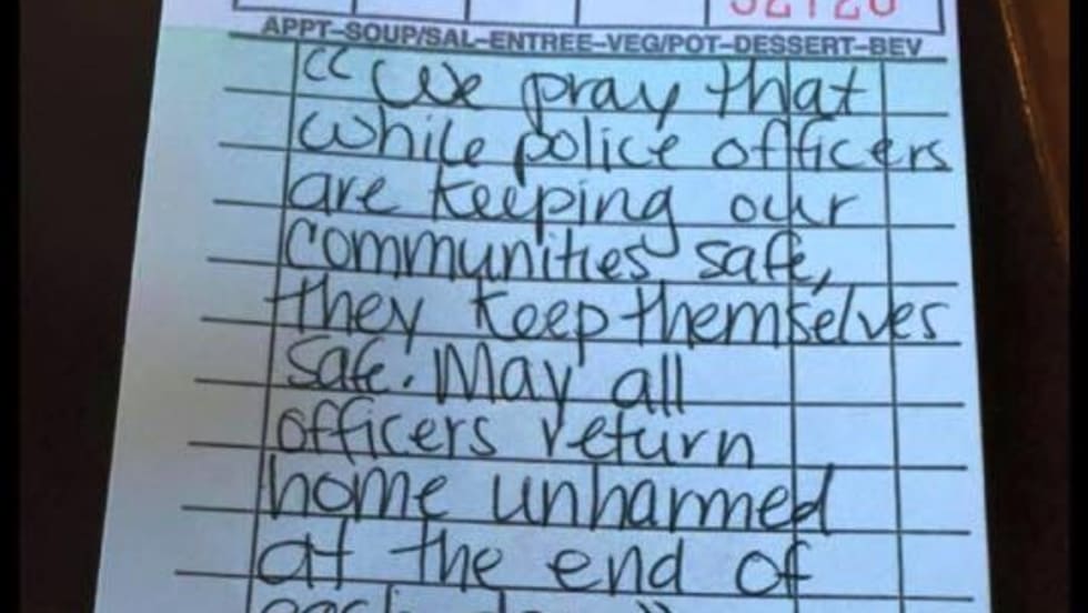 Gulfport (MS) police officers received a random act of kindness while eating at Tony's Brick Oven Pizzeria on Sunday.
