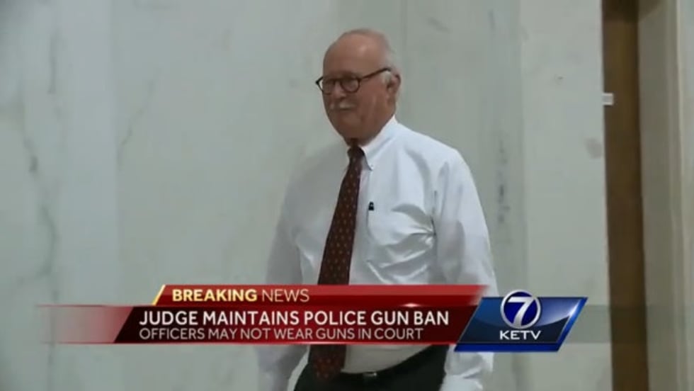 Late Friday, Douglas County (NE) District Court Judge James Gleason issued an order, affirming his ban on police carrying guns into court, even as part of their uniform.
