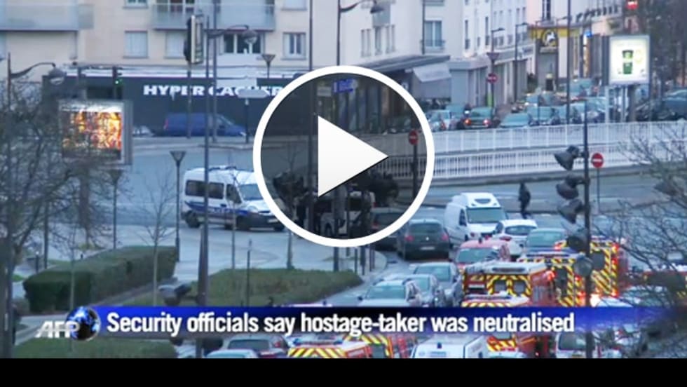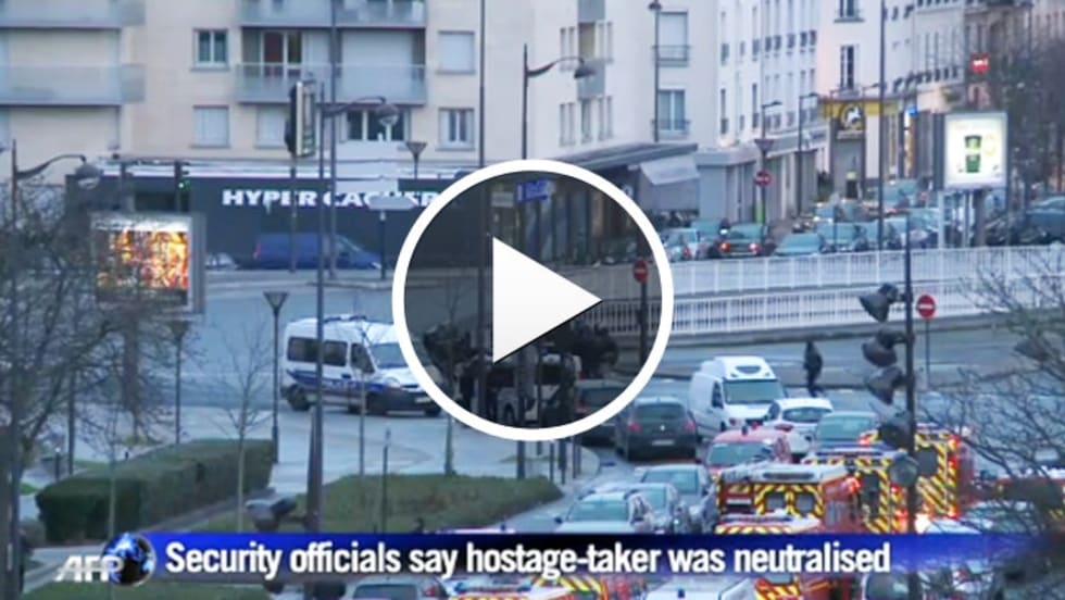 Police stormed a kosher supermarket on the eastern edge of Paris on Friday, killing a gunman linked to the killing of a policewoman and a deadly attack on a French satirical newspaper that involved the deaths of two police officers.