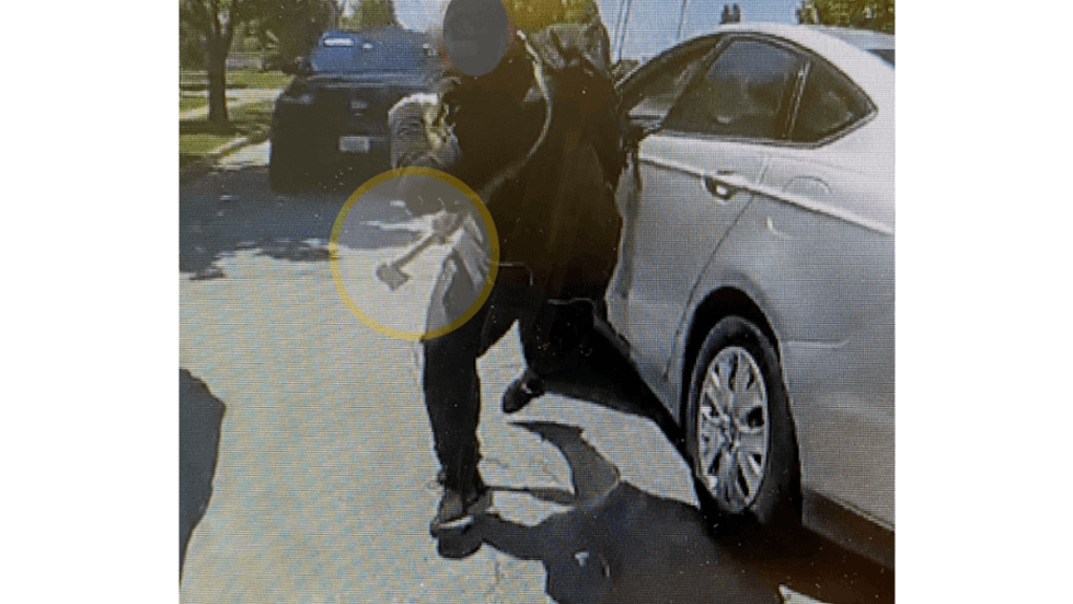 Police said the officer was conducting a traffic stop around 11 a.m., when a different driver pulled up next to the officer, and a man exited the vehicle with a hatchet in his hand.