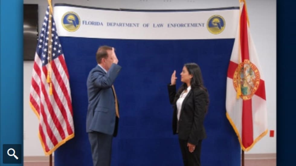The widow of a Kissimmee, FL, police officer recently killed in the line of duty was sworn in as a special agent with the Florida Department of Law Enforcement.