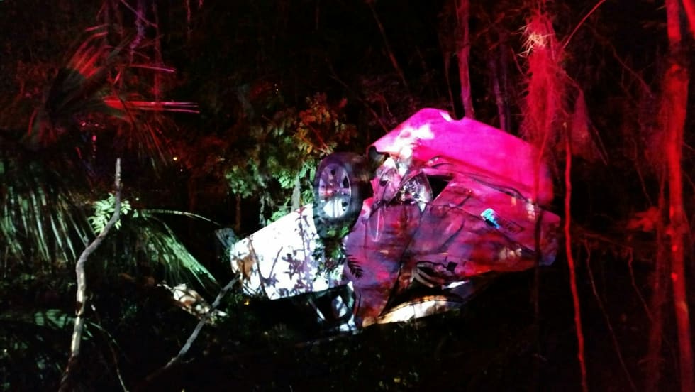 A Florida deputy is credited with saving a traffic crash victim's life after holding a vehicle up before it could crush him.