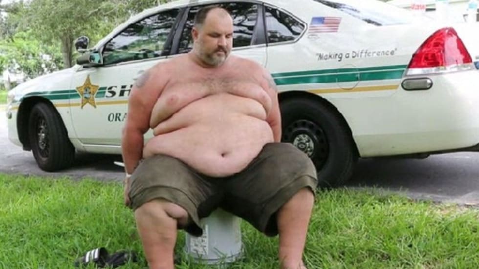 A roughly 400-pound man was taken into custody Wednesday after he allegedly pushed an undercover deputy into something sharp and cut his arm in a neighborhood north of Orlando International Airport.