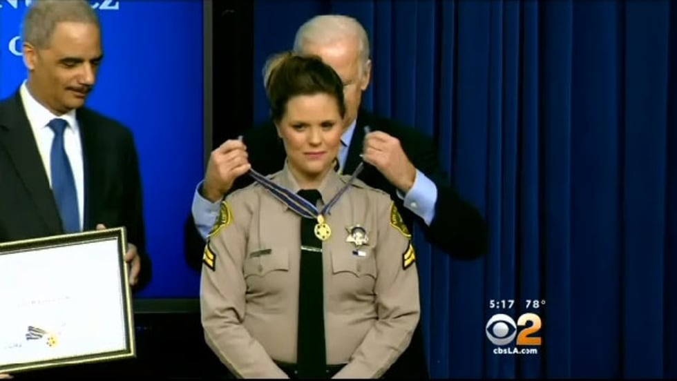 Deputy Jenna Underwood-Nunez, who was five months pregnant, was off-duty and camping with her family when she “observed a boy struggling in the lake about 100 yards from shore,” a White House statement said.