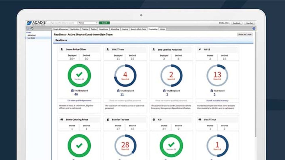 The Acadis Readiness Suite includes tools for delivering and tracking online training in real-time, managing scheduling, and maintaining inventory.