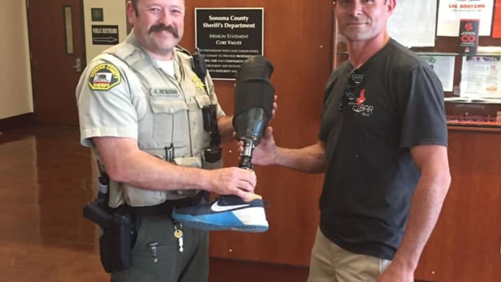 Deputies with the Sonoma County (CA) Sheriff’s Office were pleased to deliver to a man his expensive prosthetic leg after he lost it while skydiving.