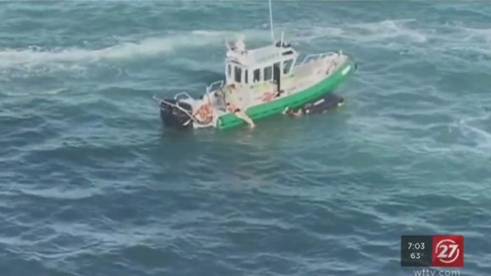 Two women operating a jet ski fell off their vehicle in Florida's Port Canaveral Saturday afternoon and were rescued from being struck by a cruise ship by a Brevard County Sheriff's deputy and a quick-thinking harbor pilot.