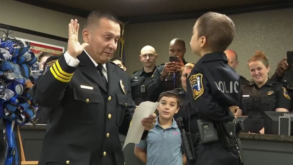 Chief Raymond Garivey of the Freeport (TX) Police Department recently swore in 6-year-old Abigail Arias as an honorary police officer. The little girl is dying of cancer.