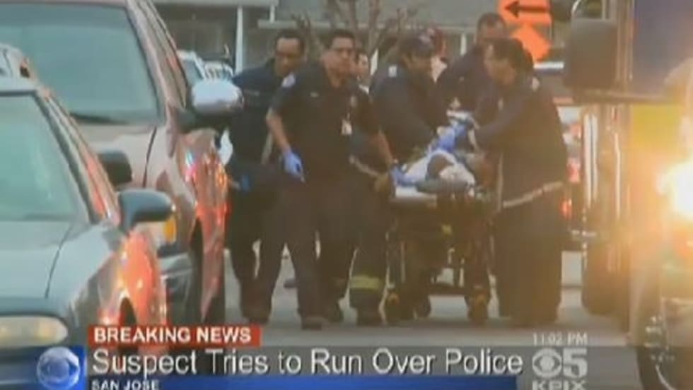 A man driving a stolen car who rammed pursuing police cars and then accelerated directly toward an San Jose (Calif.) Police officer on foot was shot and killed Monday night.