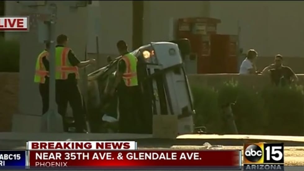Two Phoenix, AZ, police officers were transported to the hospital following a rollover collision in west Phoenix Sunday morning.