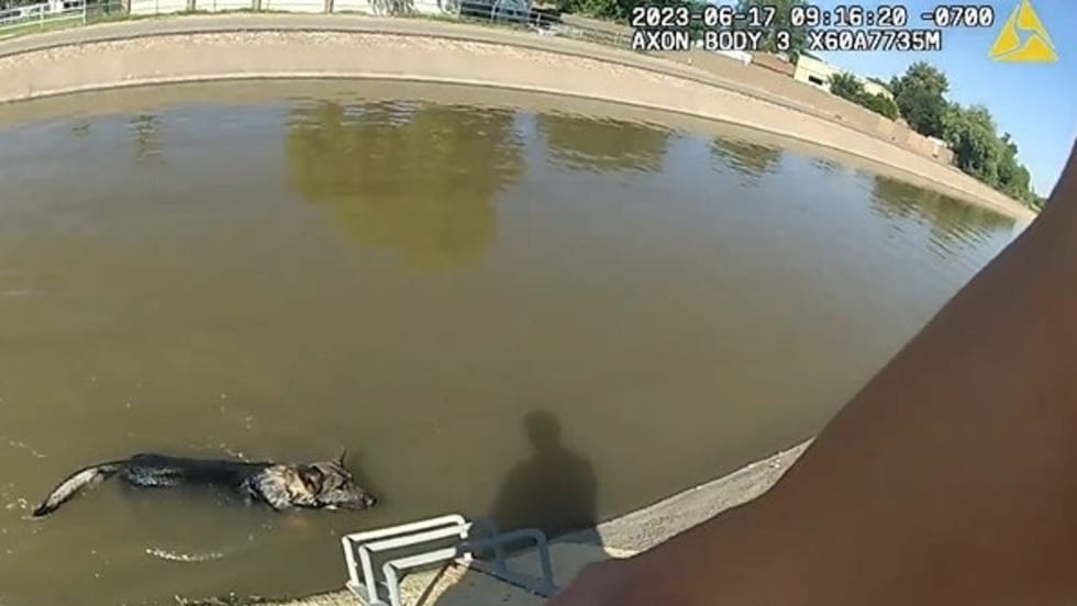 “Officer Sorenson took immediate action by removing his ballistic vest and gun belt and entering the canal to try and rescue the dog. The dog was skittish and did not immediately come to Officer Sorensen,” police said.
