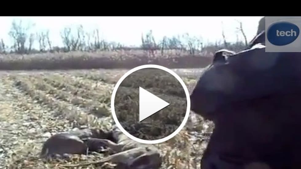 Police used a handgun to blast apart the antlers of two tangled bucks that were unable to separate themselves after a bitter duel. Footage shows Illinois police taking aim three times at the duo, which they feared would otherwise die from starvation if they were not split up.