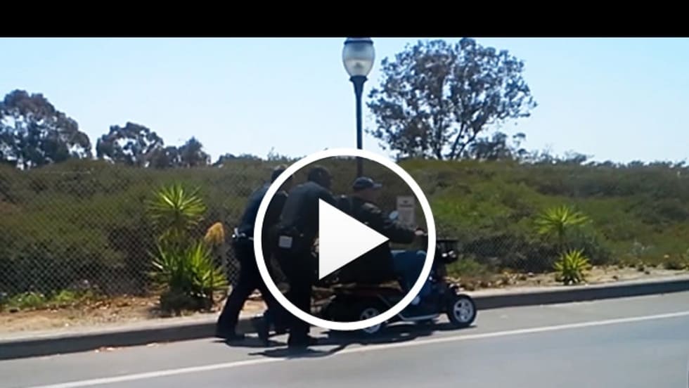 Two nearby officers, Eric Cooper and his partner Milo Shields, were monitoring traffic on Clairemont Mesa Boulevard when they noticed Larocque struggling with the chair.