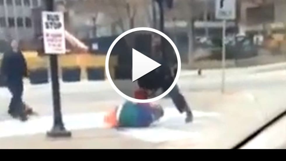 A Milwaukee Police officer used physical force to arrest an activist dressed as a clown, after the man punched him outside City Hall. Video taken by a passing motorist of the fight has gone viral.