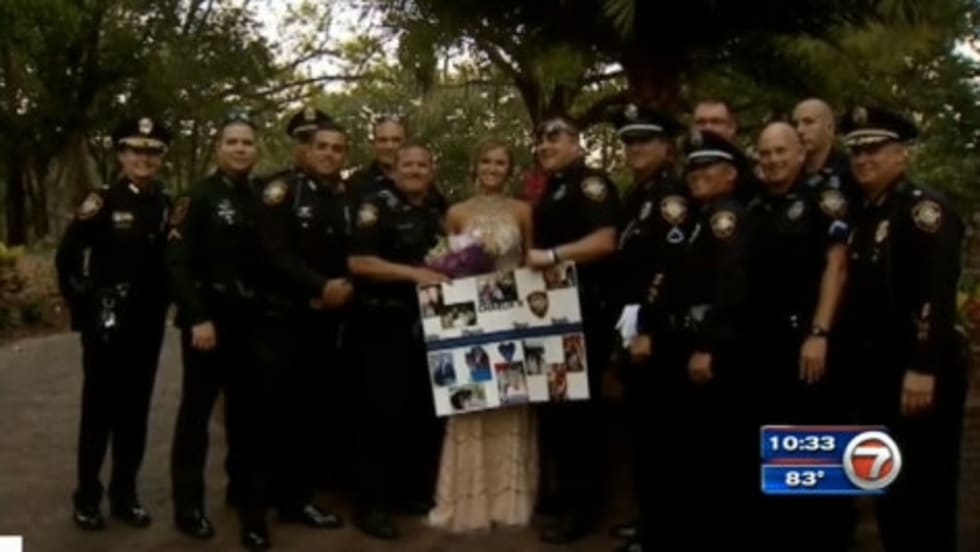 The daughter of a fallen Tarpon Springs, FL, police officer was escorted to her senior prom by several of his brothers in blue.