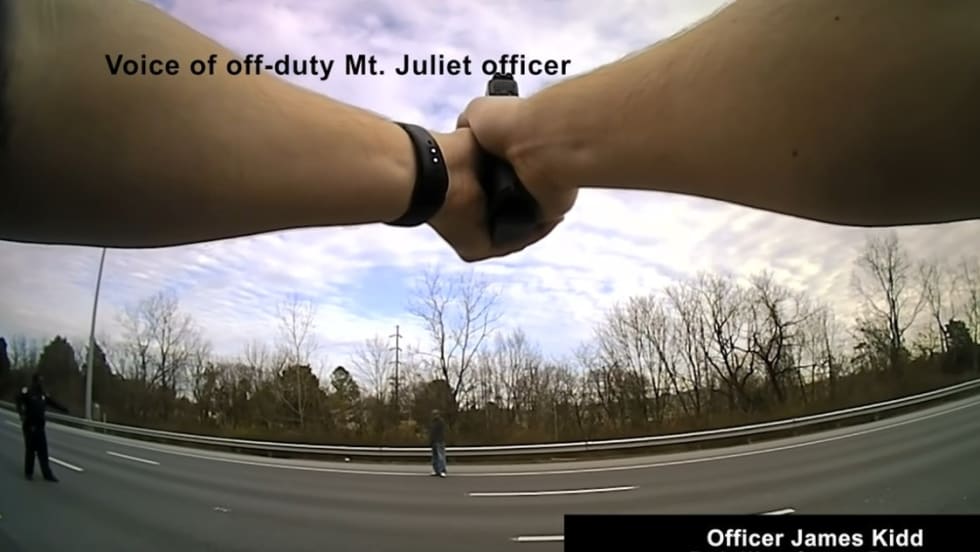 The encounter began shortly before 2 p.m. local time, when a Tennessee Highway Patrol trooper first spotted the man on the shoulder of the interstate. Officers tried for about a half-hour to deescalate the situation. They pleaded with the man to drop the box cutter and keep his hands in sight.