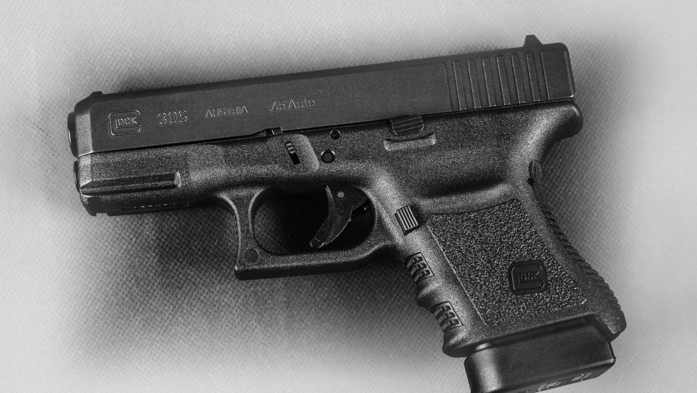 Glock's 30S subcompact pistol is a .45-caliber hybrid of the company's Glock 30 and Glock 36 that offers a larger frame to accommodate 10-round capacity in a slim package. Read A.J. George's full "Arsenal" review of the firearm. Photos courtesy of Mark W. Clark.