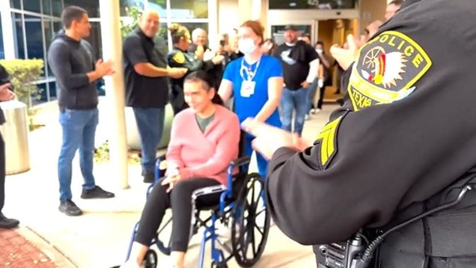 Sansom Park police officer Lina Mino was released from in-patient rehab on Friday after being shot in the face during a training exercise last month.