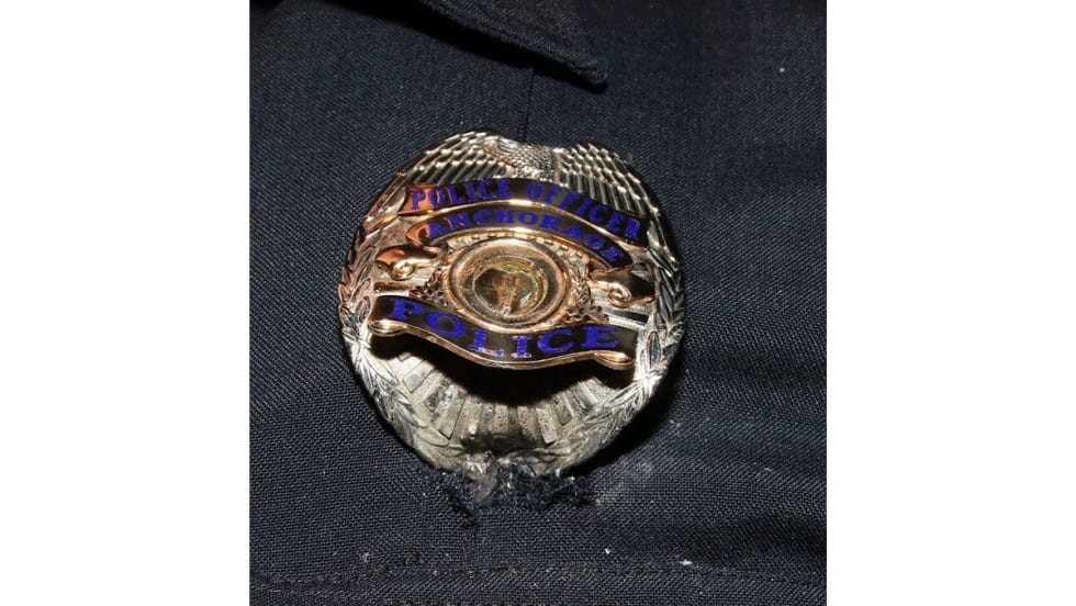 The bullet hit Officer Jason Cusack's badge and was stopped by his body armor.