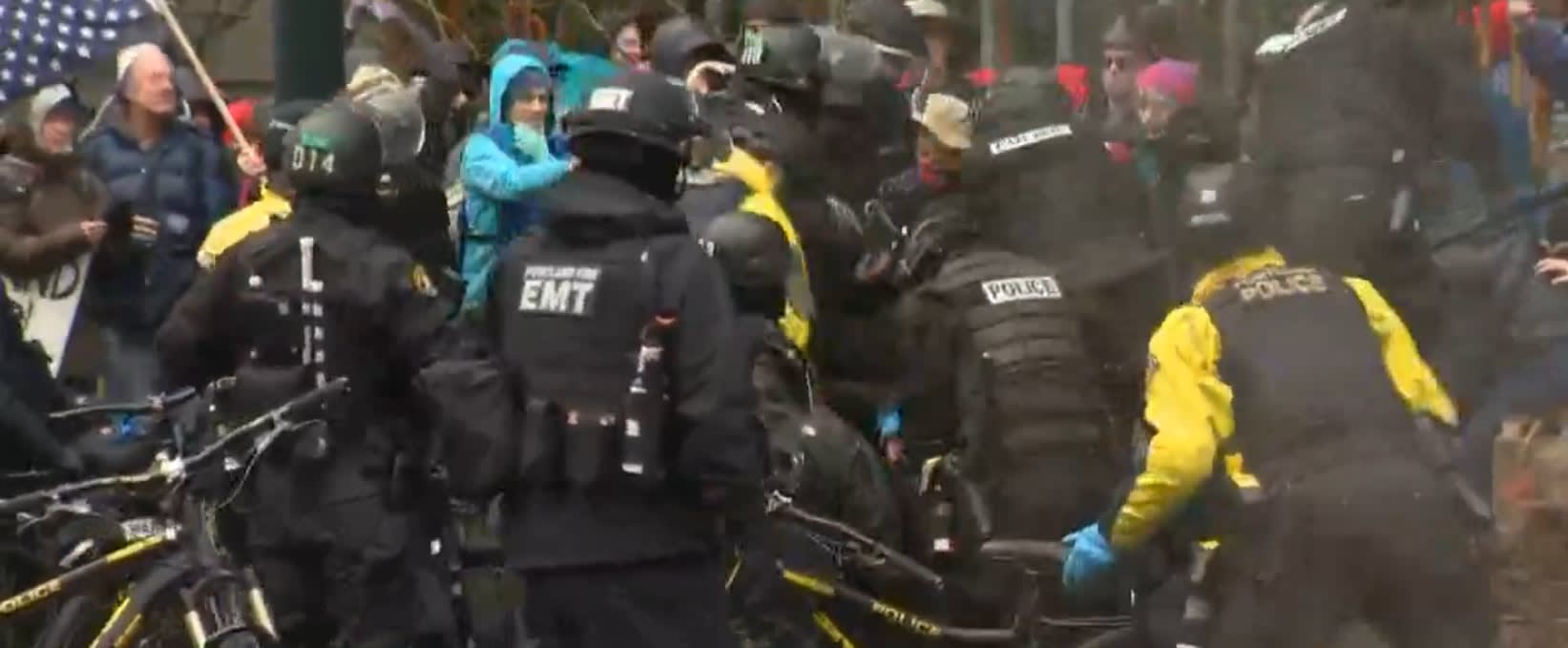 Read More →Portland, OR, police officers in riot gear prevented a full-scale clash between protest blocs by restricting access to Terry Schrunk Plaza, where Trump backers and free-speech advocates rallied for hours in a self-contained bubble within this liberal city.