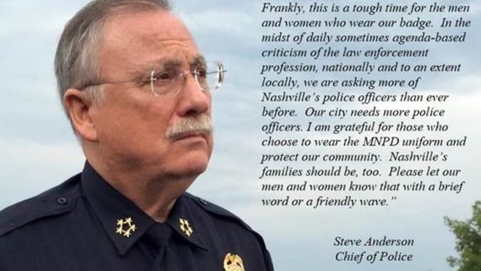 The chief of the Nashville Metro Police Department took to Twitter late last week to plead for citizens to thank a police officer, appreciate the difficulty of their jobs, and understand that despite being fewer in numbers officers are being asked to do more and more every day.