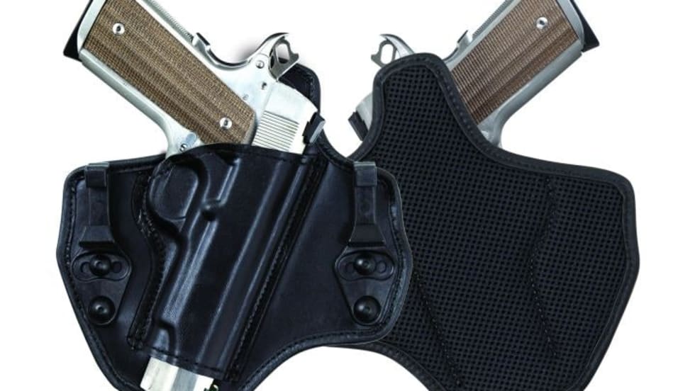 The Bianchi Allusion series includes the Model 125 Consent, Model 130 Classified, and the Model 135 Suppression holsters. The holsters are formed with full-grain leather that's wrapped and laminated around a thermal-molded synthetic core.