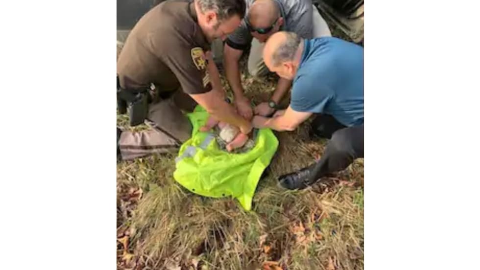 Thirteen squad cars responded, including a K-9 unit, and after a 30-minute search, they found the boy, "cold and wet but breathing." It's not known how long he was in the woods.