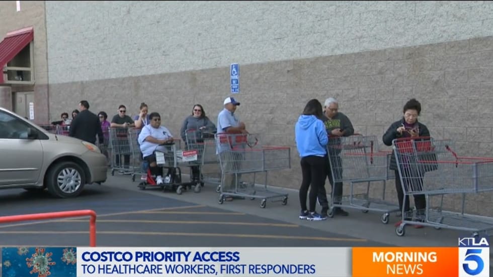Health care workers, police officers, firefighters, EMTs, and other first responders will be moved to the front of any line to enter a Costco warehouse, the company said on its website.
