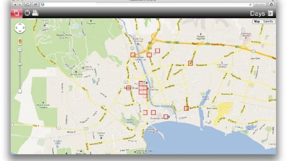 By analyzing crime data, the PredPol tool maps “hot spots” identifying when and where crimes are most likely to occur.