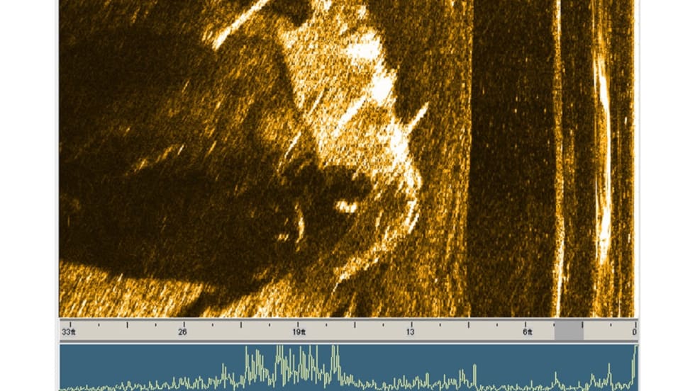 The sonar equipment paints a picture of the riverway bottom and allows for identification of objects without ever getting into the water.