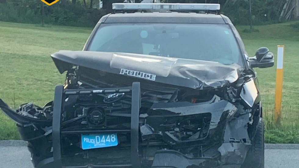 An officer with the Dartmouth (MA) Police Department was injured on Sunday when his patrol vehicle was struck by a suspected drunk driver.