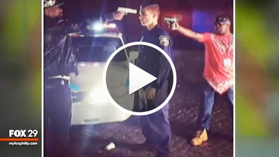 A Philadelphia Fire Department paramedic has apologized for an Instagram post that shows two African American men pointing guns at the head of a white police officer.