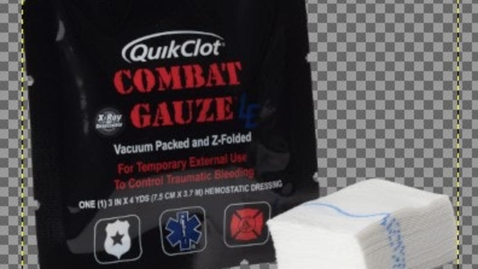 QuikClot Combat Gauze LE is a 3-inch x 4-yard strip of z-folded soft, white, nonwoven, hydrophilic gauze impregnated with kaolin, an inorganic mineral that is both safe and effective in accelerating the body’s natural clotting cascade.