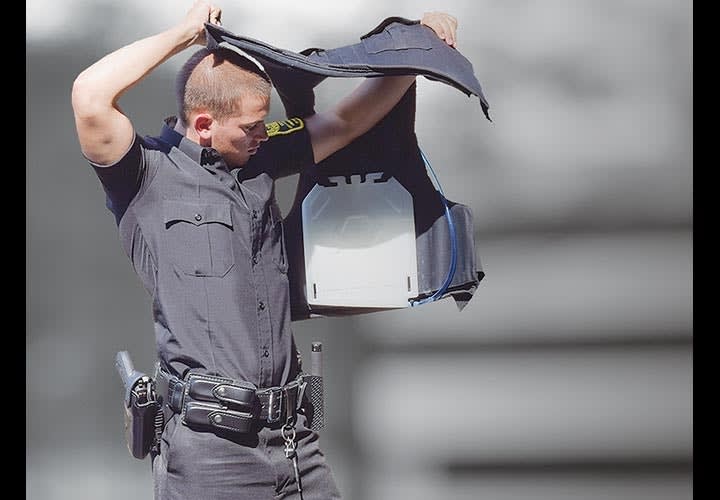 Read More →The inventor struck upon the idea of essentially creating a flat water bottle shaped to be worn under armor with a drinking tube attached. And the IcePlate was born.