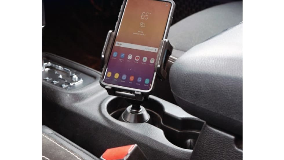 The brand new Zirkona cup holder phone mount features Gamber-Johnson's medium two-down joiner.